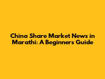 China Share Market News In Marathi: A Beginner's Guide