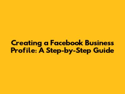 Create A Facebook Business Profile: A Step-by-Step Guide
