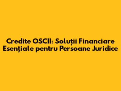 Credite OSCII: Soluții Financiare Pentru Afaceri