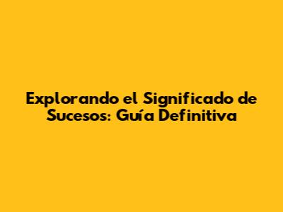 Explorando El Significado De Sucesos: Guía Definitiva