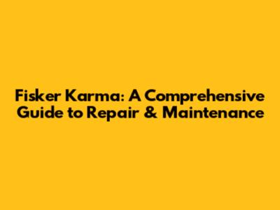 Fisker Karma: A Comprehensive Guide To Repair & Maintenance