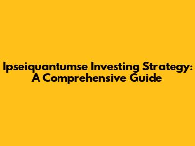 Ipseiquantumse: A Deep Dive Into This Investing Strategy