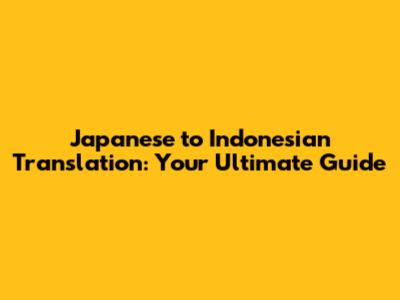 Japanese To Indonesian Translation: A Complete Guide