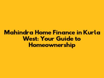 Mahindra Home Finance In Kurla West: Your Guide