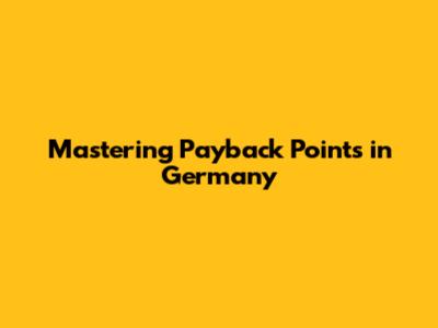 Mastering Payback Points In Germany