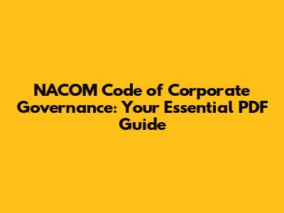 NACOM Code Of Corporate Governance: Your Essential PDF Guide
