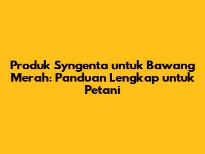 Produk Syngenta untuk bawang merah adalah pilihan utama bagi petani yang ingin meningkatkan hasil panen dan kualitas bawang merah mereka. Syngenta, sebagai perusahaan pertanian terkemuka, menawarkan berbagai solusi inovatif yang dirancang khusus untuk memenuhi kebutuhan budidaya bawang merah. Dengan menggunakan produk-produk unggulan Syngenta, petani dapat mengoptimalkan pertumbuhan, melindungi tanaman dari hama dan penyakit, serta meningkatkan hasil panen secara signifikan. Mari kita telaah lebih dalam mengenai produk-produk Syngenta yang sangat bermanfaat untuk budidaya bawang merah, serta bagaimana cara penggunaannya yang efektif.