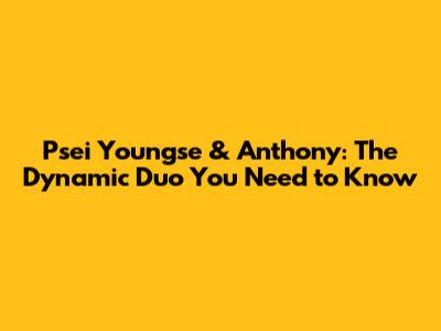Psei Youngse & Anthony: The Dynamic Duo You Need To Know