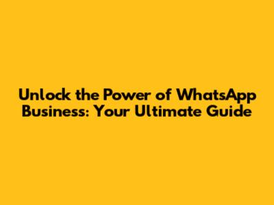 Unlock the Power of WhatsApp Business: Your Ultimate Guide